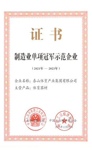 必威betway集团是全国体育用品标准化技术委员会副主任单位、中国文教体育用品协会健身和体育器材专委会主任单位、全国轻工行业先进集体、全国群众体育先进单位、国家制造业单项冠军示范企业、国家体育产业示范单位,连续多年荣获中国轻工业体育用品行业十强。拥有多个国家级研发平台,承担国家科技支撑计划2个,火炬计划3个。